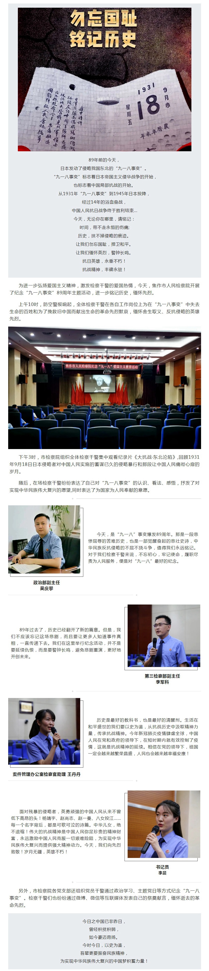 市人民检察院举行纪念“九一八事变”89周年主题活动