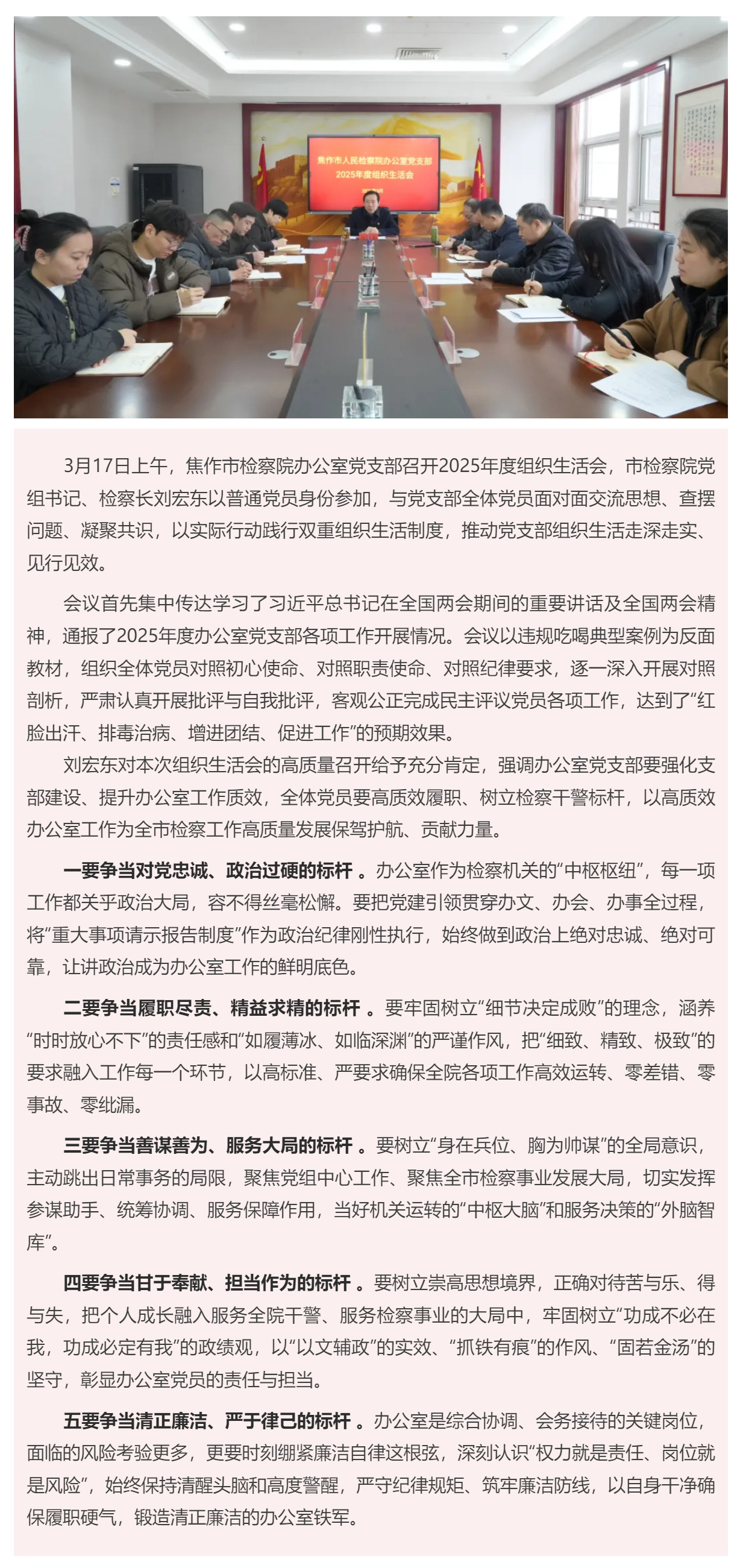聚焦高质效履职 树立检察干警标杆——刘宏东以普通党员身份参加所在党支部年度组织生活会